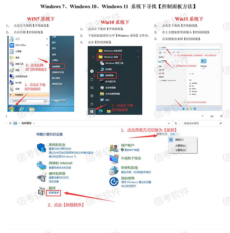 1、先參照下圖根據(jù)自己的操作系統(tǒng)版本找到【控制面板】——【卸載程序】