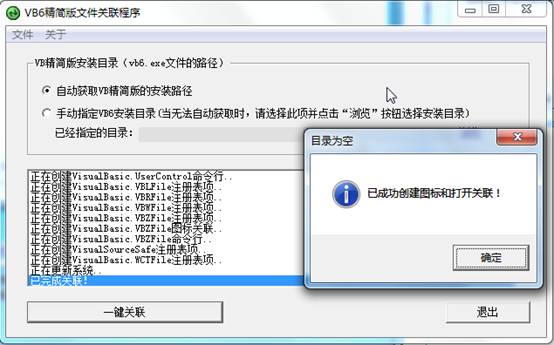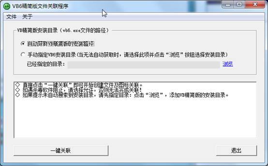 如果你的VB6.0安裝路徑不是默認的,請手動指定VB6.0安裝目錄后,在點擊一鍵關聯(lián)。