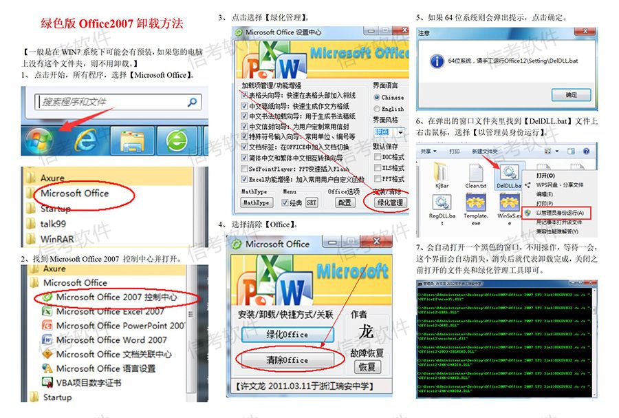 4、如果電腦上存在【綠色版Office2007】,則參考下圖卸載。如果不存在,如果不存在則跳過(guò)繼續(xù)往下閱讀。