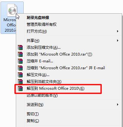 2、右擊安裝包,然后選擇“解壓到Microsoft office 2010”。