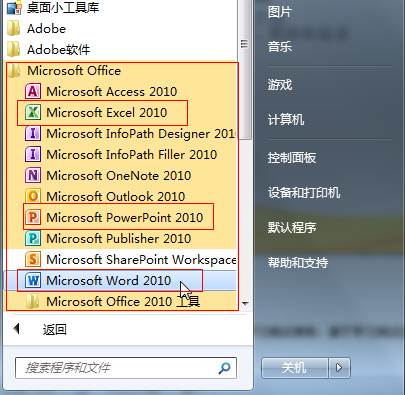 10、在開(kāi)始菜單——所有程序——Microsoft office ——下面就是全部的Microsoft office2010。