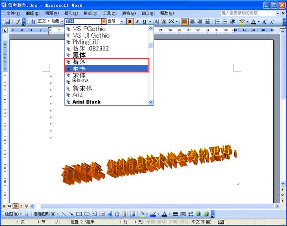 2.回到“Word”中去查看字體,已經(jīng)有了“楷體”、“隸書(shū)”字體。