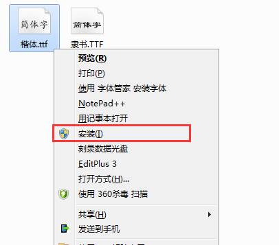 1、選中下載的字體文件,單擊鼠標(biāo)右鍵,選擇“安裝”即可。