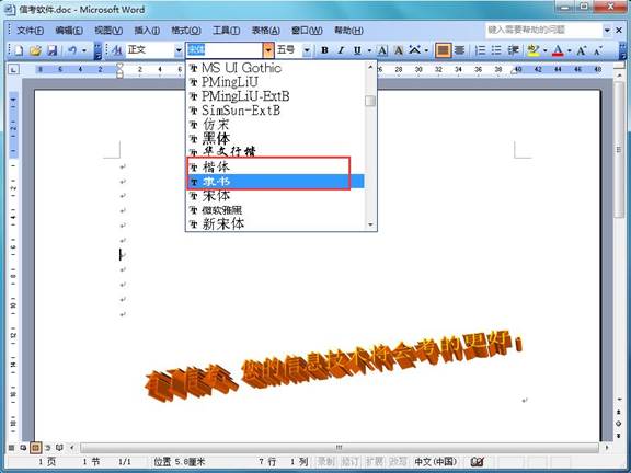 8.回到“Word”中去查看字體,已經(jīng)有了“楷體”、“隸書(shū)”字體。