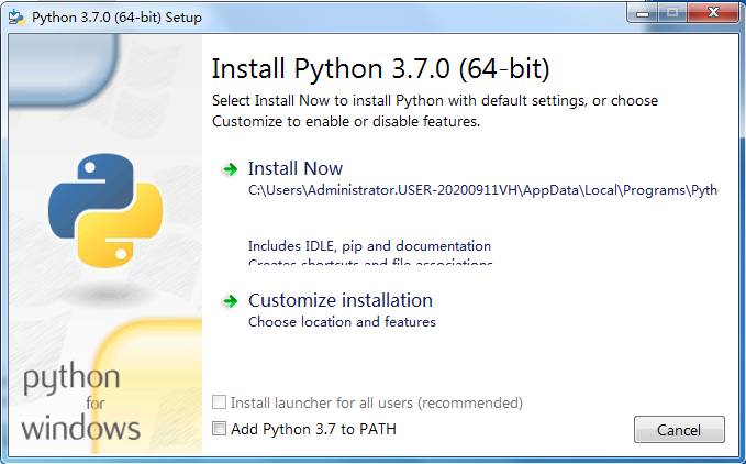 2、雙擊“python-3.7.0-amd64.exe”打開安裝程序。