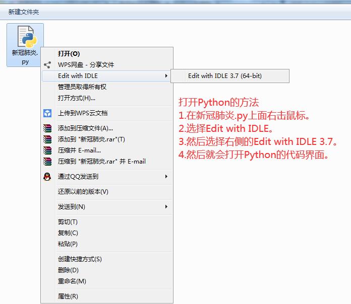 注意:如果您的電腦系統(tǒng)安裝Python后,再py文件上面右擊鼠標(biāo)沒有Edit with IDLE選項(xiàng)的話,則參考下面的打開方法。