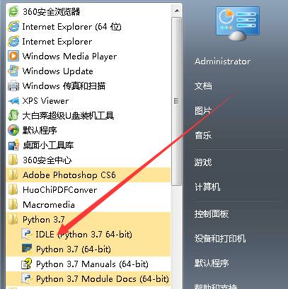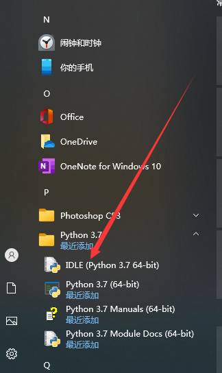 1.在左下角的開始菜單里面,找到Python文件夾中的IDLE(Python 3.x)如圖箭頭指向