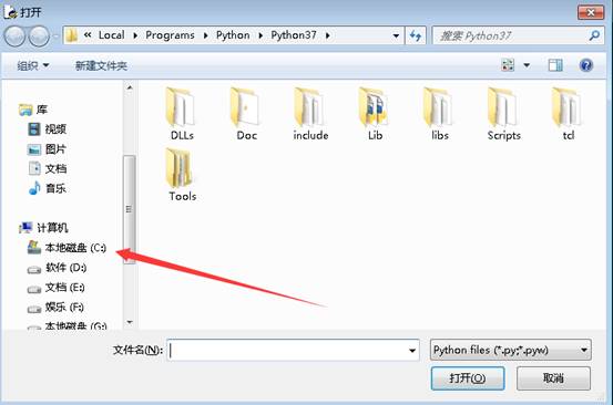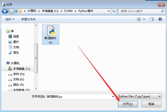 4.再彈出的窗口中選擇左側(cè)的C盤下:EXAM下Python操作文件夾下的“新冠肺炎.py”