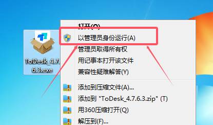 2、在ToDesk安裝包上右擊鼠標(biāo),選擇以管理員身份運行打開程序