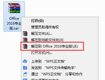 2、在安裝包上右擊鼠標(biāo),選擇“解壓到office2016(VOL版)”